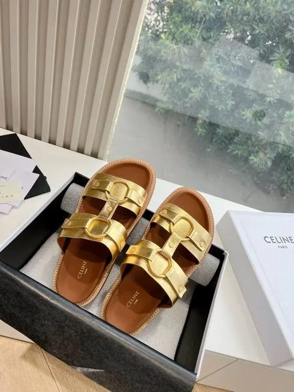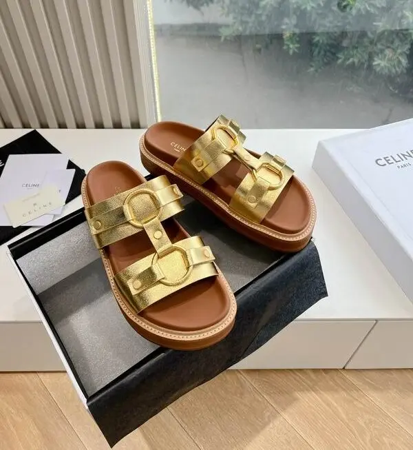 Celine Leather Slides Golden