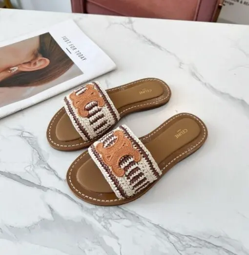 Be the first to review “Celine Raffia Leather Sandal Brown Logo”