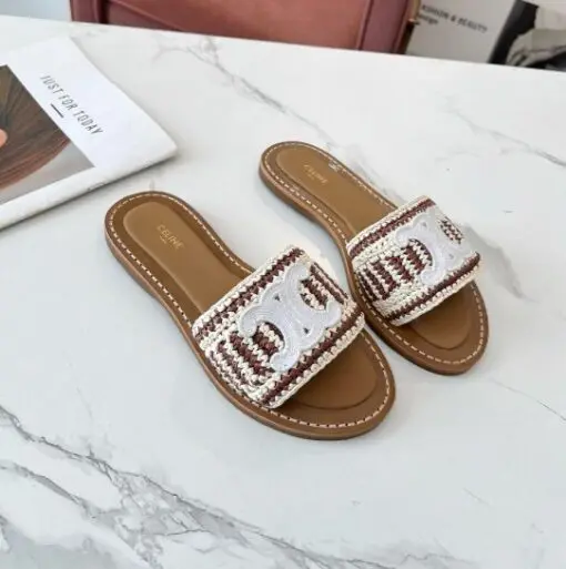 Be the first to review “Celine Raffia Leather Sandal White Logo”