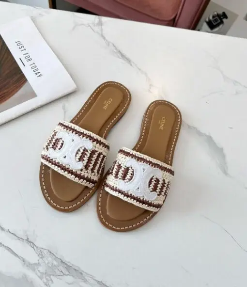 Celine Raffia Leather Sandal White Logo