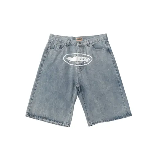 Corteiz Alcatraz Denim Shorts Blue