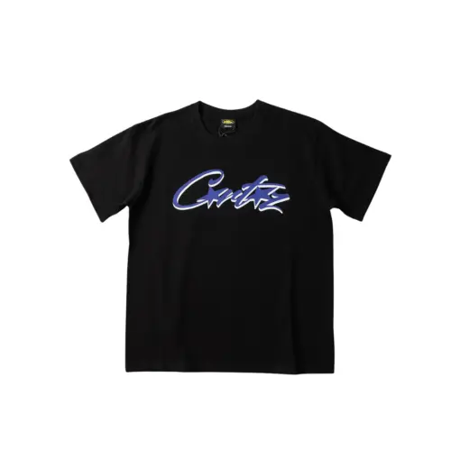 Corteiz Short Sleeved Allstarz Euros T Shirt Black With Blue And White Logo