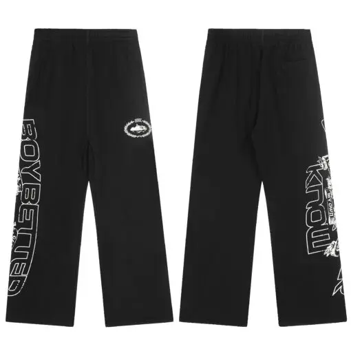 Corteiz x BBK Royale Open Hem Black Wide-Leg Sweatpants