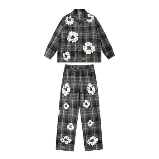 Denim Tears Wreath Pajama Shirt and Pants Black Check