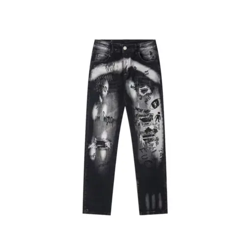 Dsquared2 Distressed Denim Jeans Print Patchwork Washed Black With Gray Cool Guy