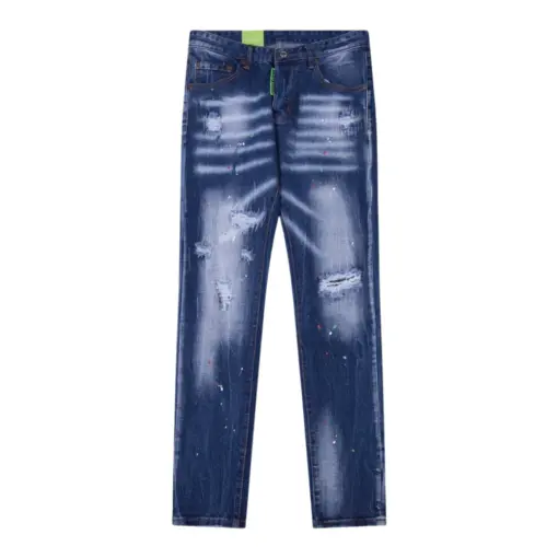 Dsquared2 Distressed Stretch-Cotton Blue Wash Ripped Details