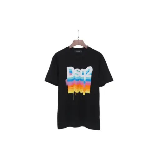 Dsquared2 Dsq2 Slouch T Shirt Black Rainbow Paint Drip Logo Print