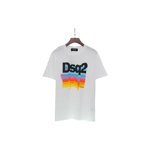 Dsquared2 Dsq2 Slouch T Shirt White Rainbow Paint Drip Logo Print