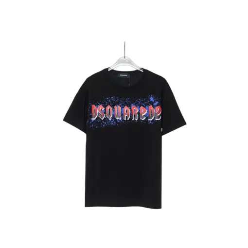 Dsquared2 Iron Logo Printed Purple Splatter T Shirt Black