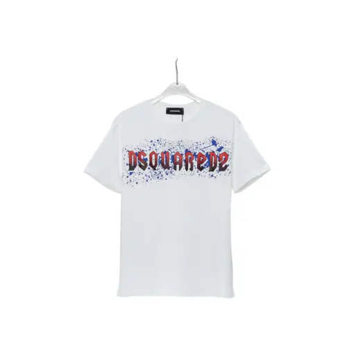Dsquared2 Iron Logo Printed Purple Splatter T Shirt White