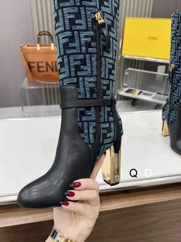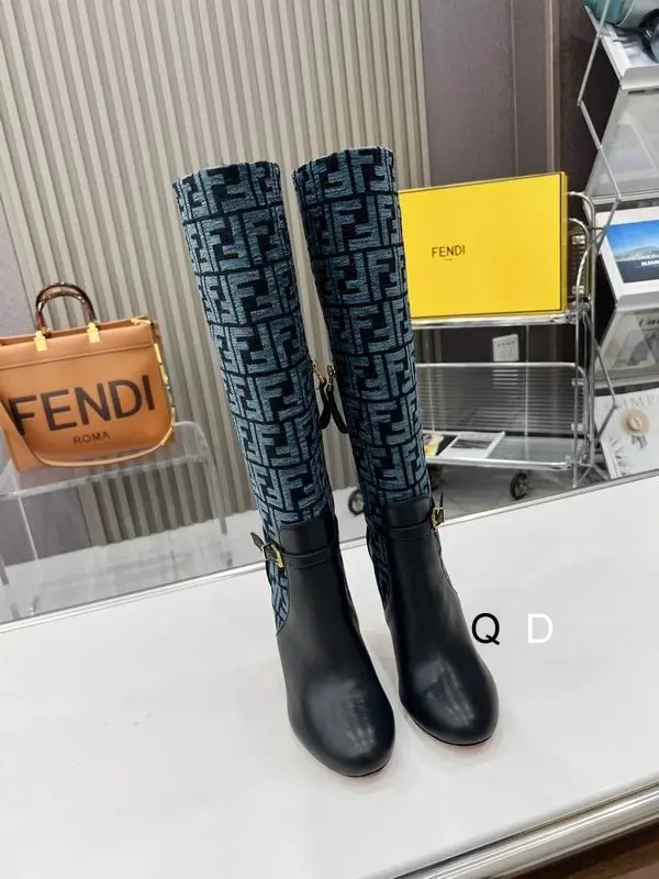 Fendi Delfina Monogram Knee-High Boots Blue/Green