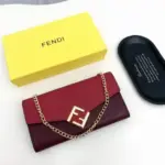 Fendi FF Diamonds Continental Wallet with Chain Red & Maroon