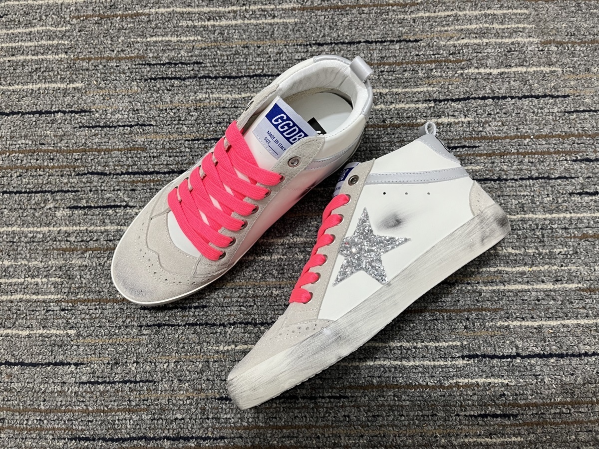 Golden Goose Mid Star Mixed Leather Glitter Sneakers