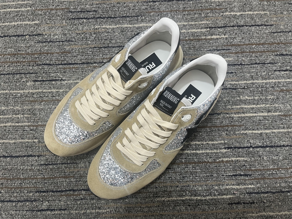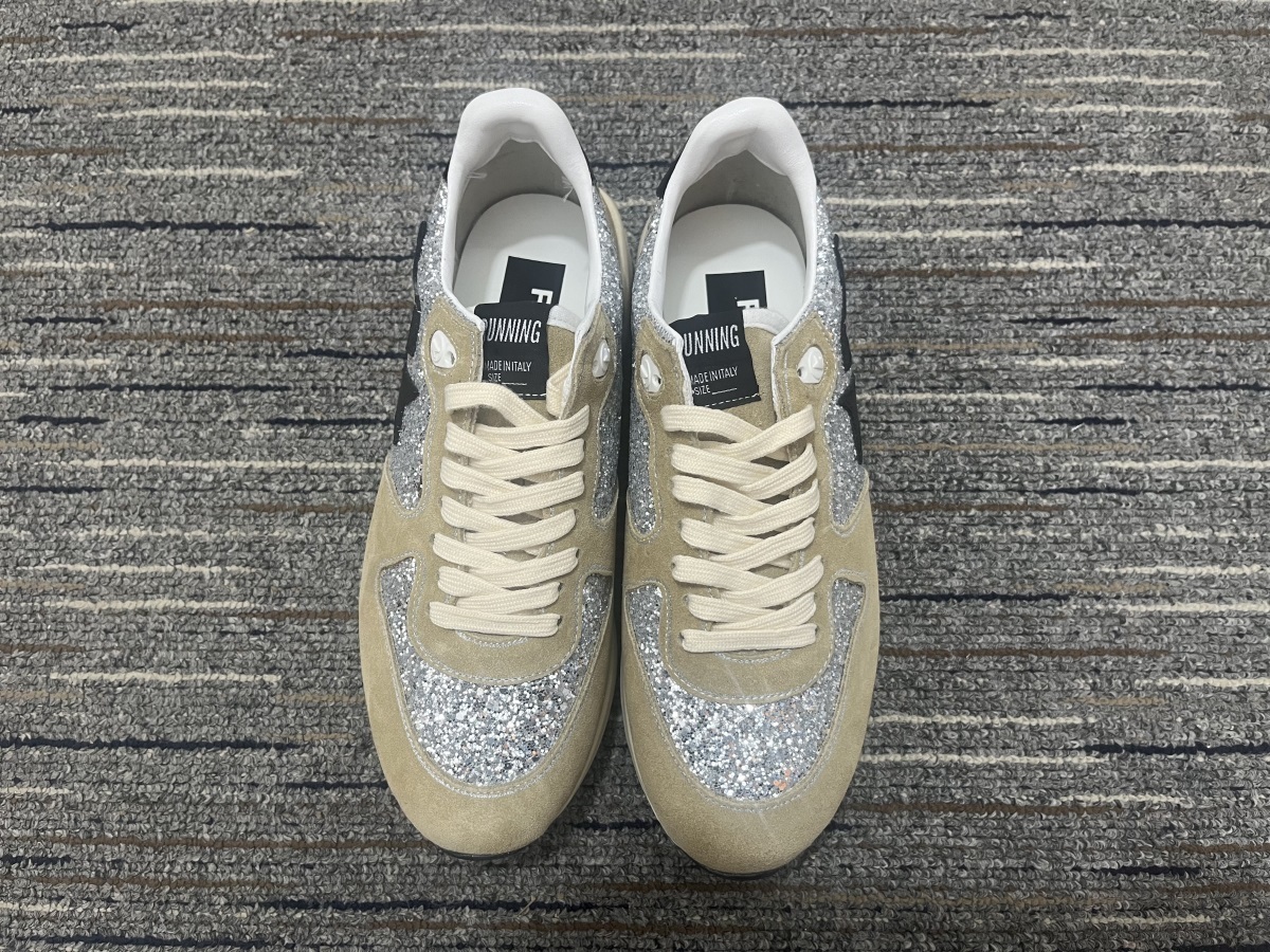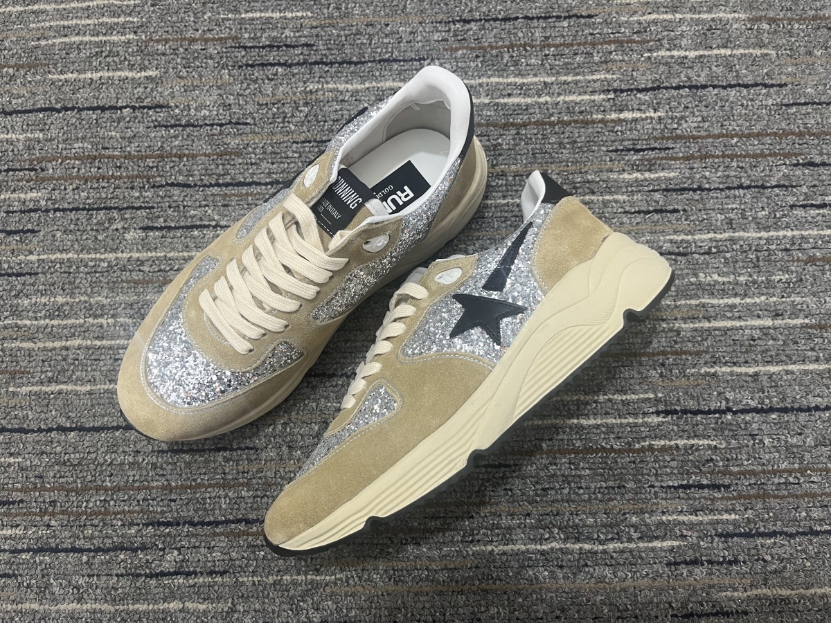 Golden Goose Running Sole Glitter-Embellished Sneakers Gray