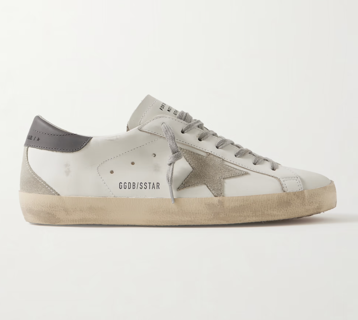 Golden Goose Super-Star Distressed Suede-Trimmed Leather Sneakers