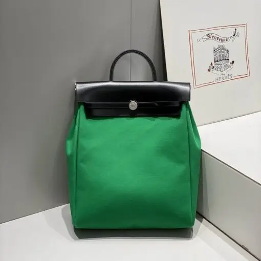 Hermes Herbag A Dos Zip Backpack Green & Black