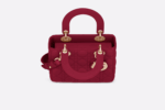 The Lady Dior My ABCDior bag perfectly reflects Dior’s vision of elegance and beauty in a delicate, timeless yet modern piece. Crafted from cherry red lambskin and covered in iconic Cannage stitching, this model features sublime padding and “D.I.O.R.” charms. metal with a pale gold finish that enhances the silhouette. It can be personalized with tone-on-tone symbol pins attached to the shoulder strap.