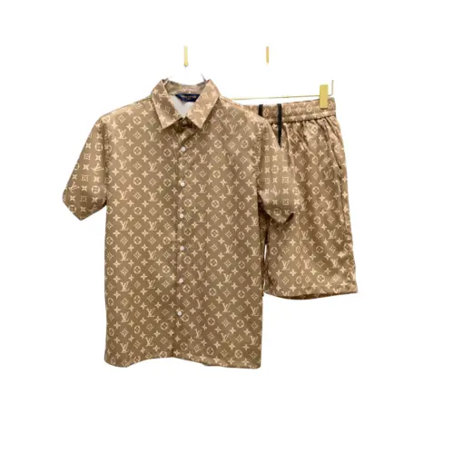 LV Beige Monogram Printed Short-Sleeved Shirt And Shorts Set