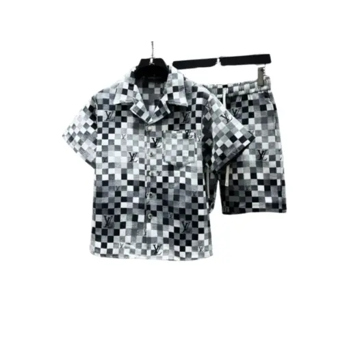 LV Black Damier 3D Denim Short-Sleeved Shirt And Shorts Set
