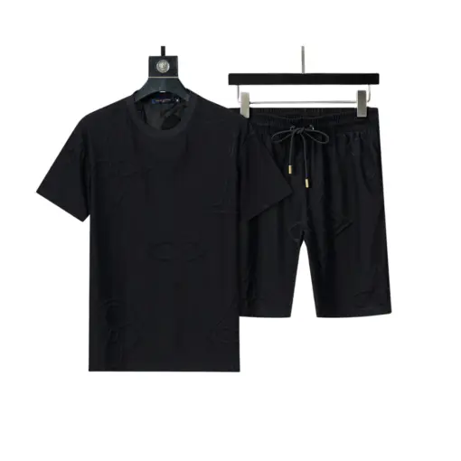 LV Black Embossed Monogram T-Shirt And Shorts Set