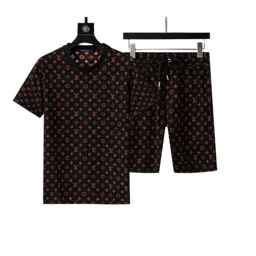 LV Black/Orange Embossed Monogram T-Shirt And Shorts Set
