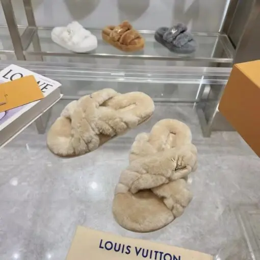 LV Orange Fuzzy Slipper Sunset Flat Mules