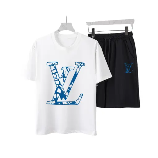 LV Blue Graphic Motif T-Shirt And Shorts Set White