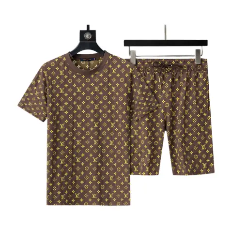 LV Brown/Yellow Embossed Monogram T-Shirt And Shorts Set