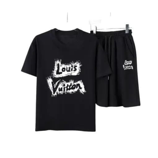 LV Brushed Signature T-Shirt And Shorts Set Black