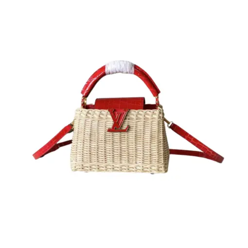 LV Capucines BB Handbag Mini Handwoven Rattan Beige Red