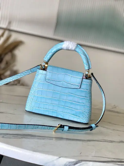 LV Capucines BB Mini Handbag Sky Blue Crocodile Leather