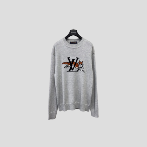 LV Embroidered Signature Cardigan In A Black Cotton Blend Ribbed Knit
