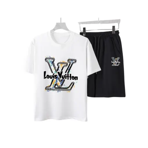 LV Colorful Crew Neck T-Shirt And Shorts Set White