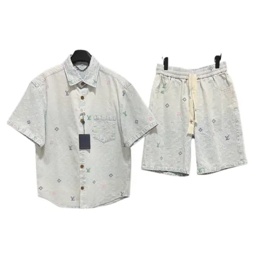 LV Colorful Embroidered Monogram Shirt And Shorts Set