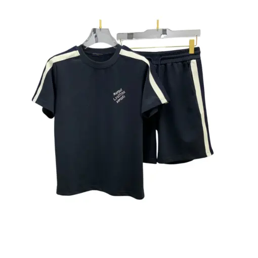 LV Contrast Striped T-Shirt And Shorts Set Navy Blue