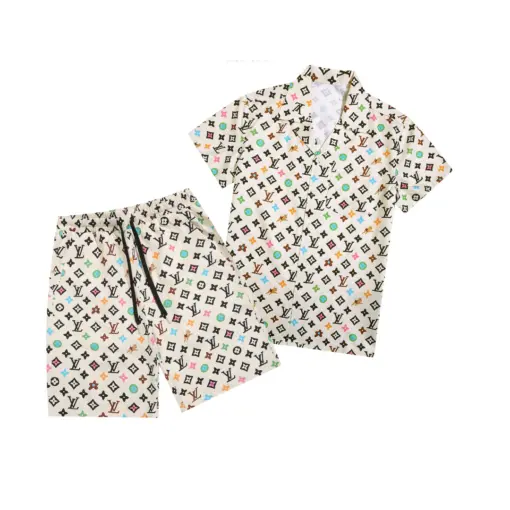 LV Creator Monogram Printed Silk Shirt And Shorts Set Cream