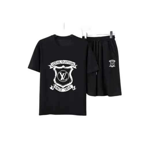 LV Crest Graphic Print T-Shirt And Shorts Set Black