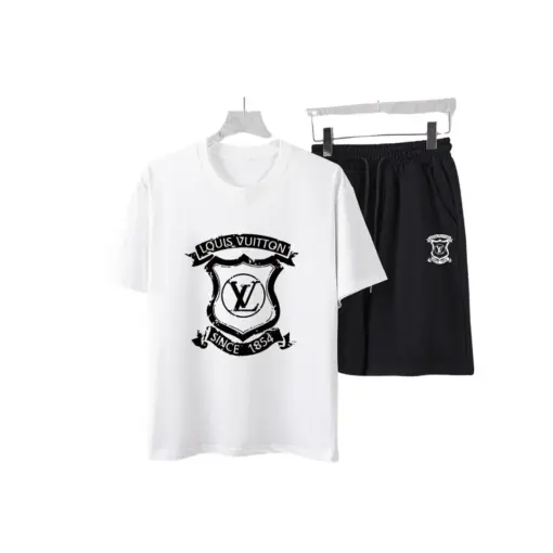 LV Crest Graphic Print T-Shirt And Shorts Set White