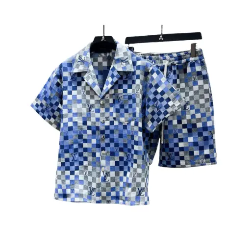 LV Damier 3D Denim Short-Sleeved Shirt And Shorts Set
