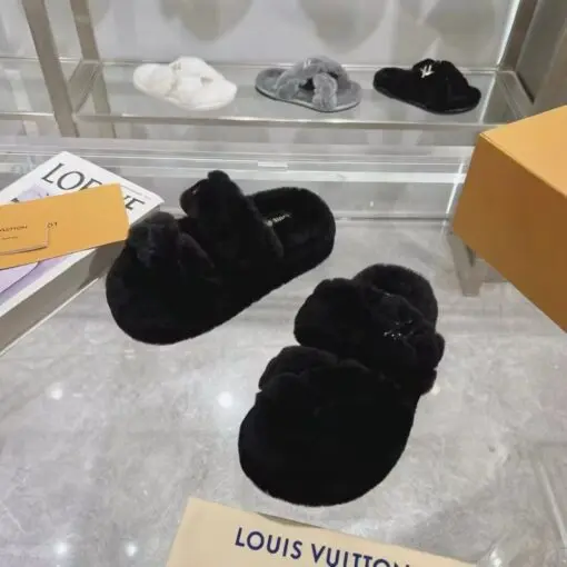 LV Bliss Shearling Mules Slipper Black