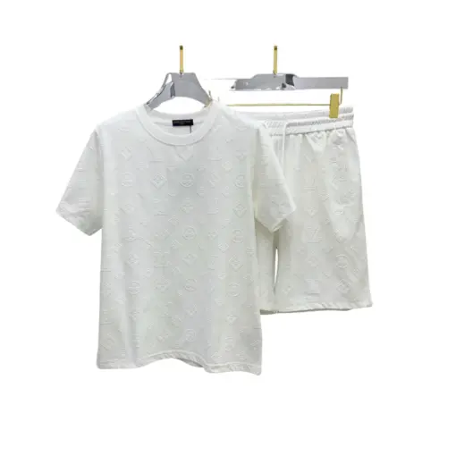 LV Embossed Monogram Printed T-Shirt And Shorts Set White