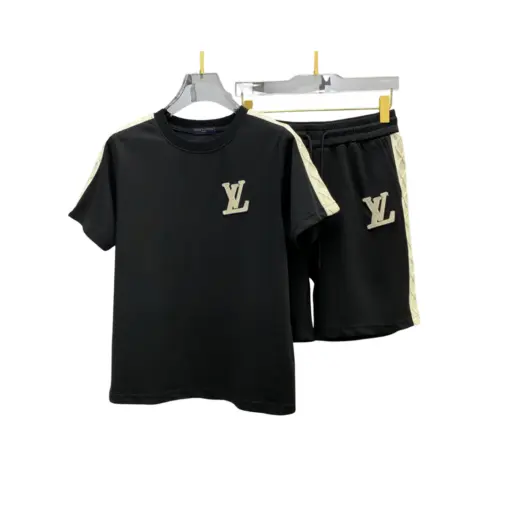 LV Embossed T-Shirt And Shorts Set Black