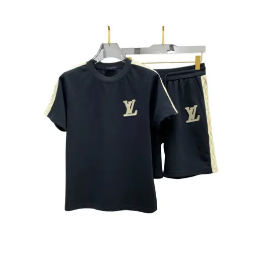 LV Embossed T-Shirt And Shorts Set Navy Blue
