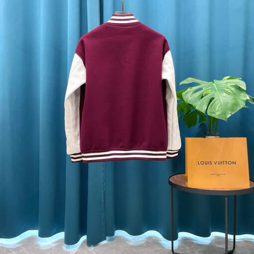 LV Embroidered Calfskin Varsity Jacket Red Plaid
