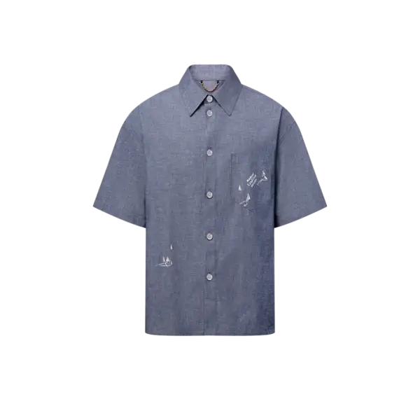 LV Embroidered Chambray Short-Sleeved Shirt Indigo