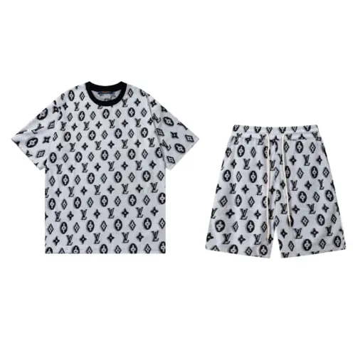 LV Escale Printed T-Shirt And Shorts Set White/Black
