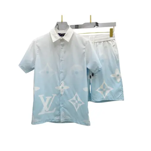 LV Light Blue Monogram Printed Shirt And Shorts Set