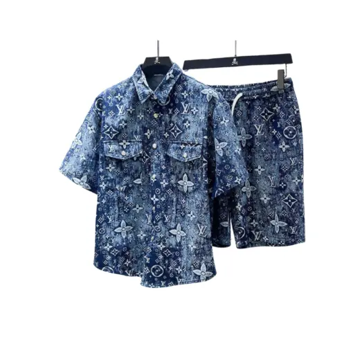 LV Monogram Denim Short Sleeves Shirt And Shorts Set