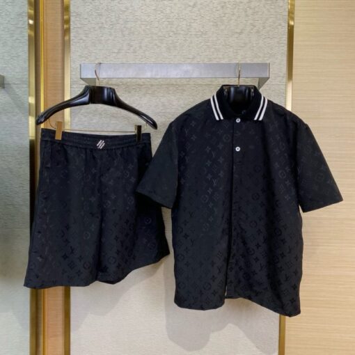LV Printed Monogram Silk Shorts Set Dark Brown