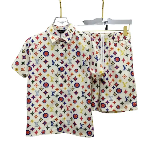 LV Monogram Print Multicolor Shirt And Shorts Set